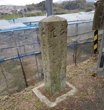 ここには道標が立てられている。右は天野で左が高野だろうか。側面は見てなかったのでよう分からん。天野方面に行きたいなら府道(左)通らんと右の道行った方が速い。狭いけど。