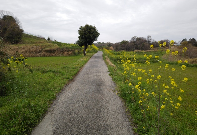 春なので道端に花が咲き誇っている。1本ある木も絵になるじゃないの。