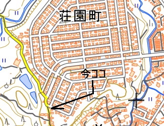 当該府道はニュータウン内に入ると思いきや、左に曲がってしまう。